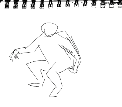 Dynamic gesture studies, utilizing straight-ahead animation. Pen on paper. 2017.